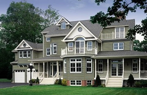 For large structures on tight lots rich shades of brown, green, and red make your home appear smaller while adding drama.